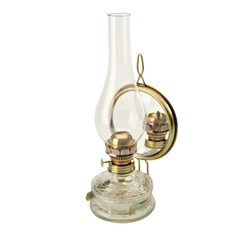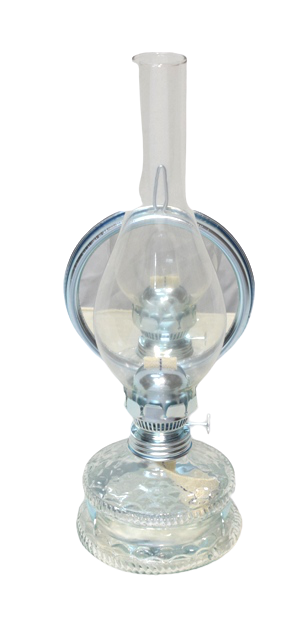 Λάμπα Πετρελαίου Γυάλινη Τσεχίας ύψος 33cm επιτραπέζια ή κρεμαστή με καθρέπτη στη πλάτη