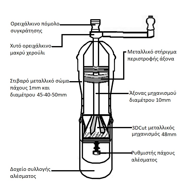 Μύλος Πιπεριού Σειρά «Αθηνά» ALEXANDER Ελληνικής Κατασκευής Χειροποίητος Ορείχαλκος Σε Φινίρισμα nickel-matt Ύψος 200mm Και Βάρος 590gr