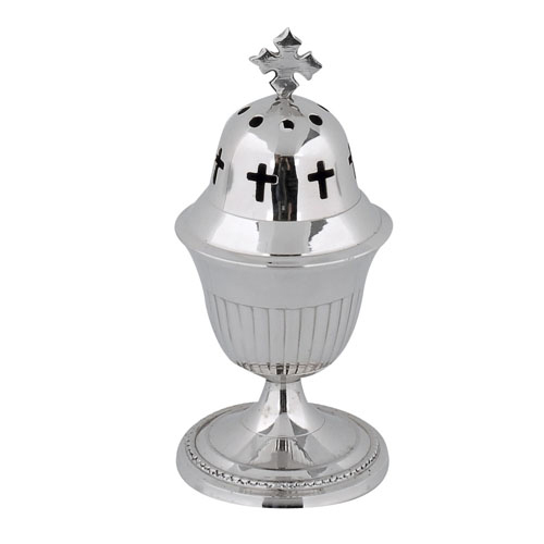 Καντήλι Νίκελ Με Λιτή Διακόσμηση Και Εγχάρακτους Διάτρητους Σταυρούς Περιμετρικά Στο Καπάκι. Στην Κορυφή Δεσπόζει Ένας Εντυπωσιακός Σταυρός. Διαστάσεις 16cm Ύψος, Εισαγώμενο Προϊόν
