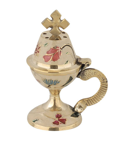 Λιβανιστήρι Ορειχάλκινο Με Επίστρωση Μπεζ Σμάλτου Με Την Απεικόνιση Κόκκινου Λουλουδιού Ιδανικό Για Το Σπίτι Και Τα Μνήματα. Εισαγώμενο Προϊόν Διαστάσεις 11cm Ύψος