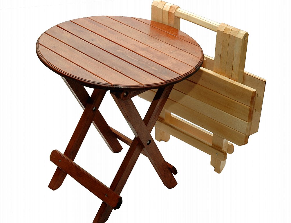 Τραπεζάκι Ξύλινο Στρογγυλό Μικρό Πτυσσόμενο ελληνικής κατασκευής
